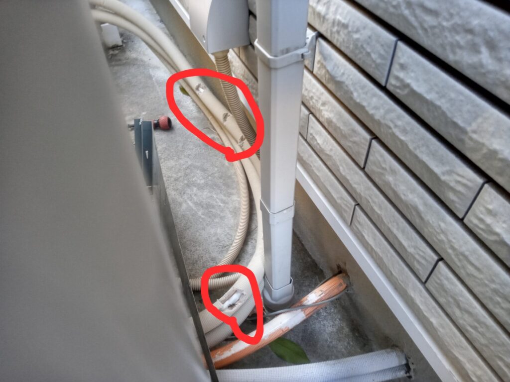 配管の保温材が3箇所ほど破れていました。