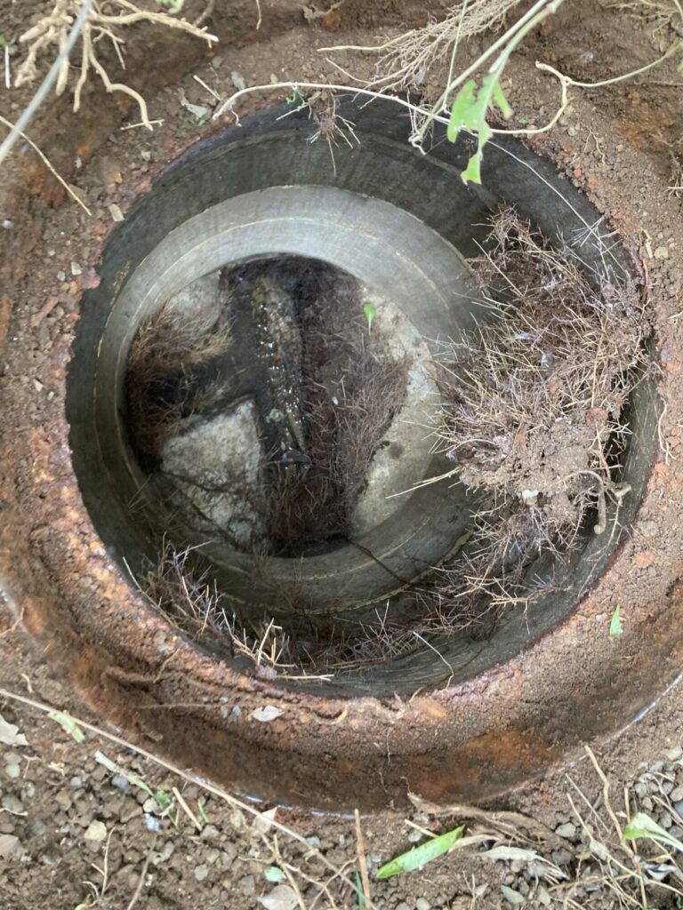 汚物などが根に絡まって、完全に詰まっていました。